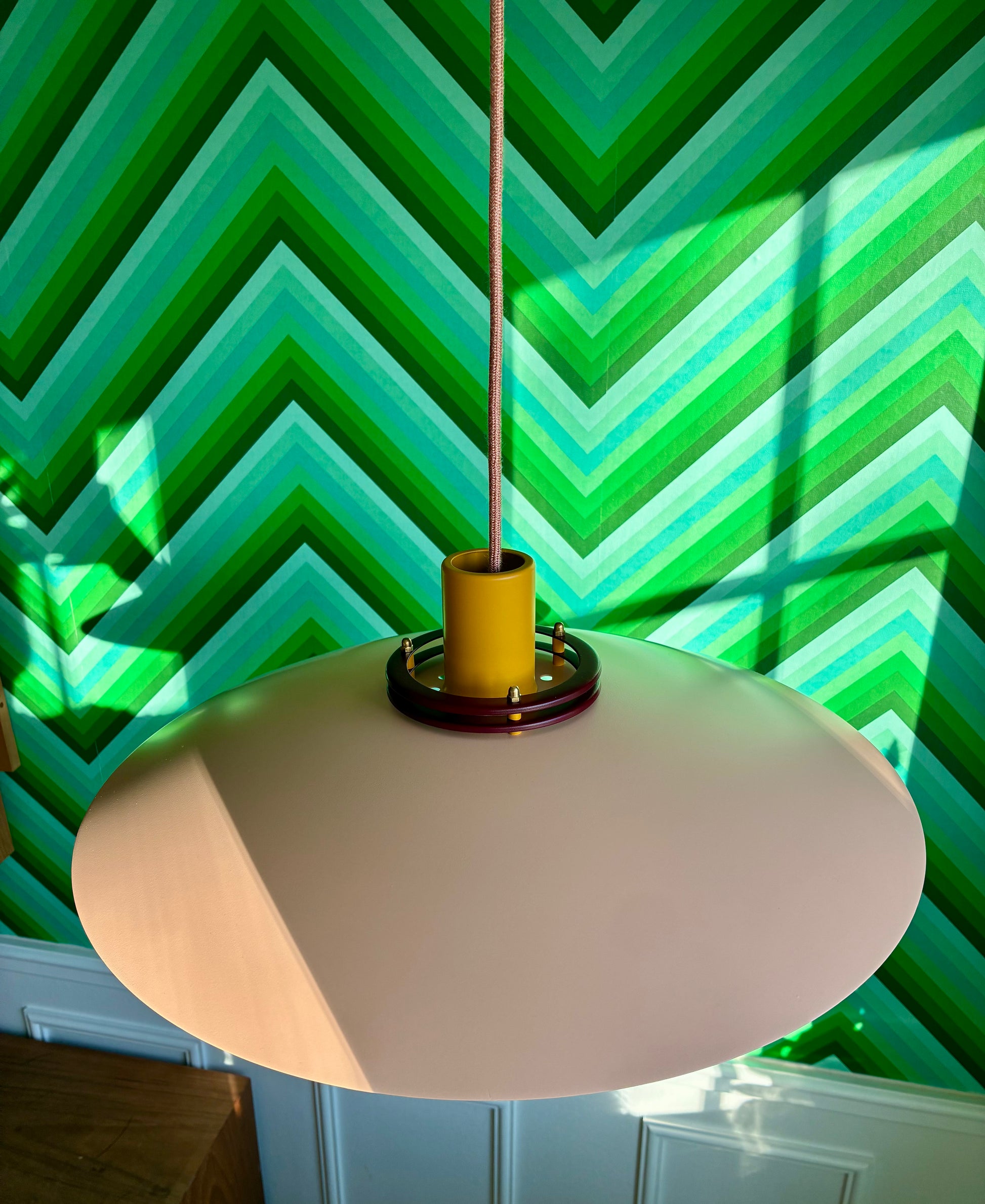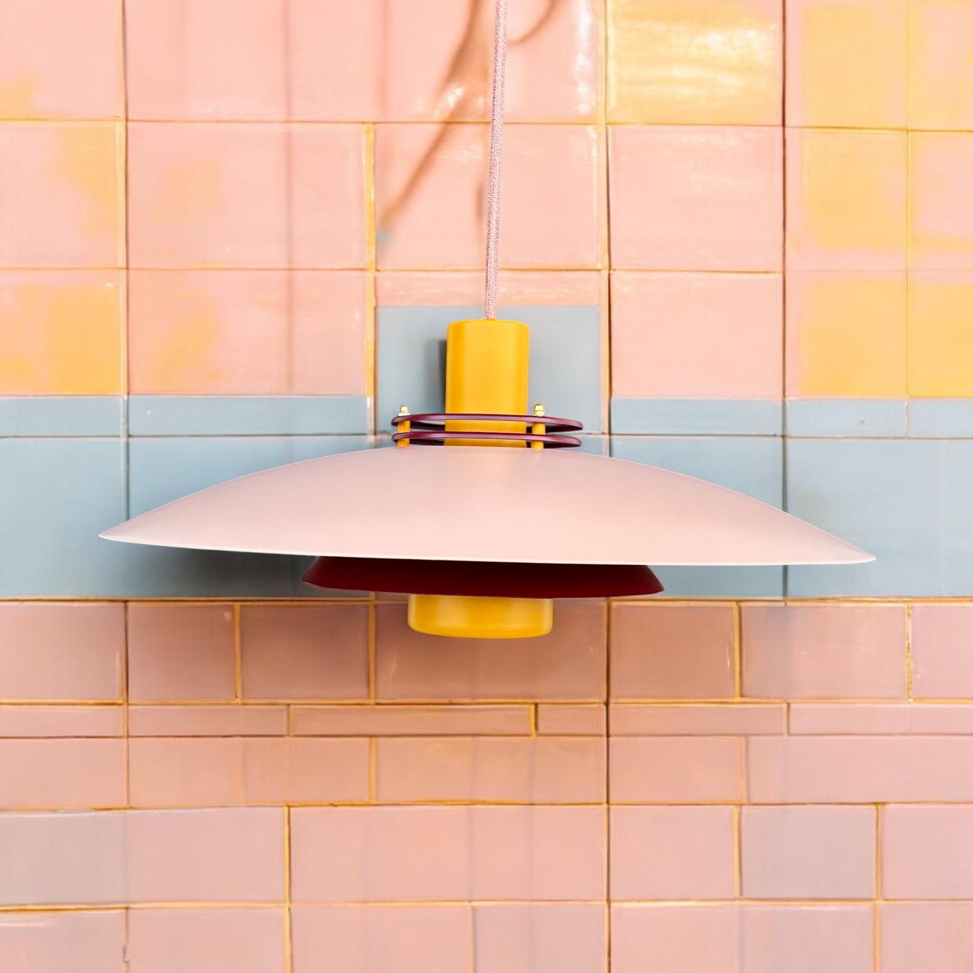 Farver: Nuancer af pastel laks, karry og burgundy
